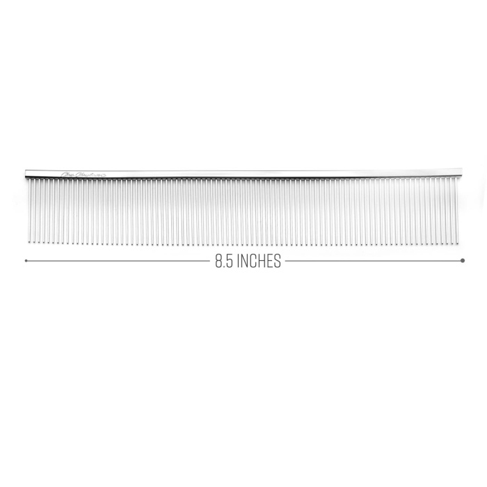 What makes this comb unique from most combs is the thin tines that can penetrate the coat and remove dead hair. The delicate tines are gentle and great for coarse coats. It comes in a silver nickel finish that will not chip or rust. This comb is great for fluffing up coats for scissoring. The 505 is also great for setting a poodle top knots and fluffing up Bichon Frise.