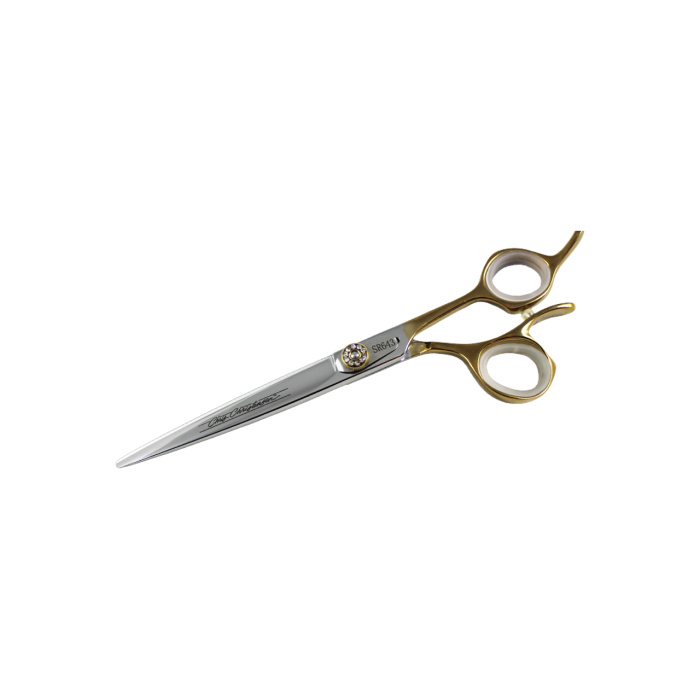 Artisan shears have a razor-sharp convex finishing that is forged from a high quality 440C Japanese Steel. This line offers a myriad of selections, including texturizing and specialty scissors along with the traditional straight and curved scissors. The gold titanium handle and the diamond simulated dial allows for elegant and easy adjusting. The Double Sided Thinning Shears is a precision blade with teeth on both blades. The double sided blade allows for a finer thinning giving your trim a softer and blended look. This collection includes the Chris Christensen exclusive LIFETIME WARRANTY and LIFETIME FREE SHARPENING