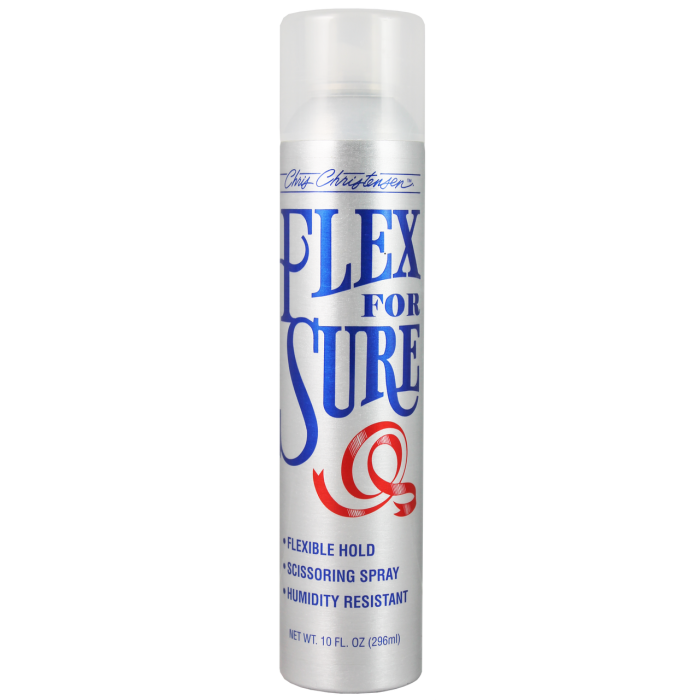Flex for Sure is a micro-fine mist infused with nourishing Panthenol and Blueberry Fruit Extract for all-day conditioning and frizz control, that brushes out easily!
