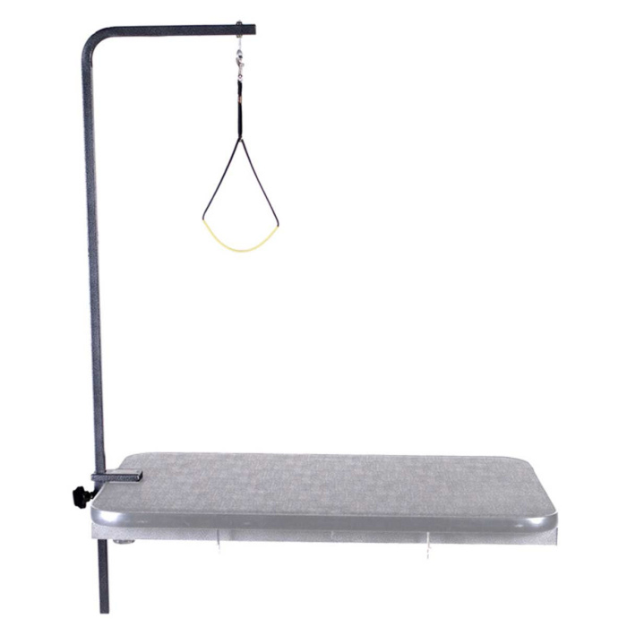 The sturdy bolt clamp has a custom-designed wide surface top that attaches securely to any grooming table up to 1.5 inch thick, allowing it to fit most tables, including all ComfortGroom tables. The arm is made of rugged 1 inch square, tubular steel durably powder-coated in a Hammer Paint finish to resist rust. The grooming arm comes with a 12 inch grooming loop and a 1 year warranty against manufacturing defects.
