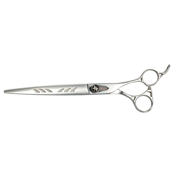The Shinobi line of shears provides an exceptionally smooth cut. This shear offers an ultra sharp semi-convex edge well suited for fine finish work or everyday grooming. This semi-convex edge shear is made from superior material ensuring strength and durability. The handle has a permanent finger rest providing comfortable hand positioning during your grooming session.