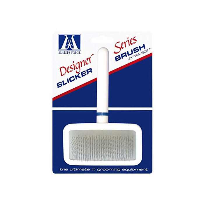 The Designer Series Soft Slicker Brush is designed to remove dead hair and prevent matting. The handle is designed to eliminate hand strain while brushing.