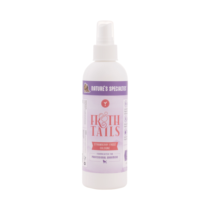 Nature’s Specialties Froth Tails Strawberry Frosé cologne will elevate pet’s grooming experience while providing a long lasting fragrance your customers will love. Inspired by the sweetness of ripe strawberries and refreshing allure of rosé and sweet champagne, this enchanting fragrance is specially crafted to keep your pet smelling delightful in between baths and grooming sessions, crafting a scent that is both sweet, sophisticated, and irresistibly charming!