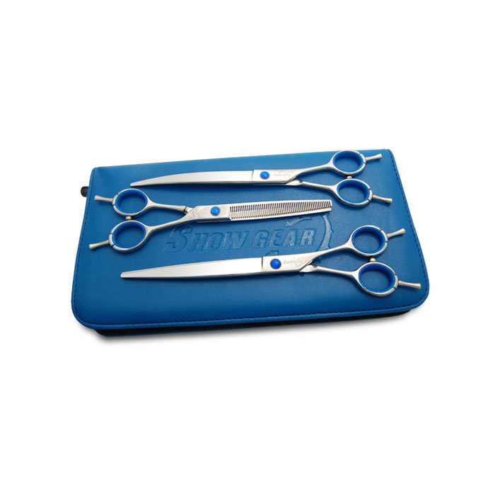 Show Gear™ brand is designed for the value-driven customer, offering groomers quality products at an affordable price. Show Gear™ shears feature anti-slip micro-serrated blades which cut effortlessly through all hair types, two soft ring inserts for extra comfort and control, high-carbon stainless steel for a durable edge, adjustable flat-screw assembly, removable finger rest, exceptional balance, and smooth satin finish.